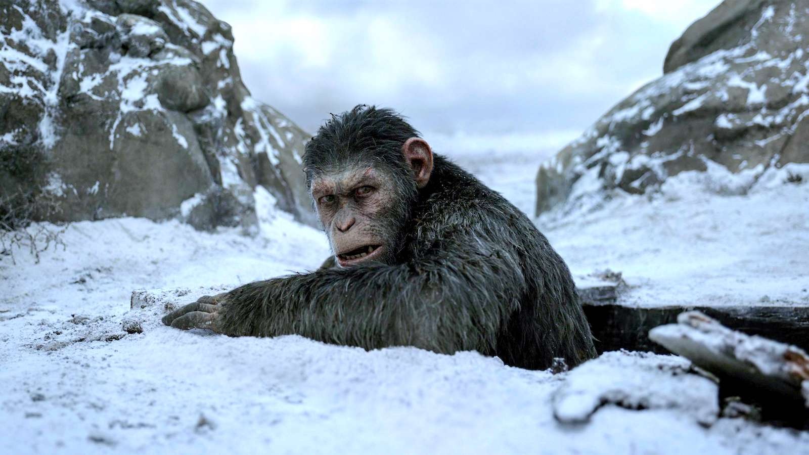 Trong cảnh phim thứ hai, mọi thứ có vẻ thay đổi một chút. Caesar cảm thấy tội lỗi vì đã không nhìn thấy bóng tối bên trong Koba. Sau tất cả những mất mát bầy khỉ đã chịu đựng trong suốt cuộc chiến, nó bắt đầu chống lại loài người, lần đầu tiên. Khi Caesar và 3 con khỉ khác tiến vào Sierras trong quá trình truy đuổi người của tay Đại tá, chúng bước qua một người đàn ông. Khi ông ta rút súng, Caesar không còn lựa chọn nào khác ngoài việc giết ông ta. Sau đó, cả nhóm phát hiện ông có một cô bé gái. Maurice, con tinh tinh thông thái, thuyết phục Caesar mang cô bé đi cùng. Đạo diễn Reeves đã lưu ý cô bé gái là yếu tố quan trọng của bộ phim, có thể sẽ là chìa khóa giúp Caesar tìm hiểu nhiều hơn về loài người và chấm dứt sự thù hận của mình.