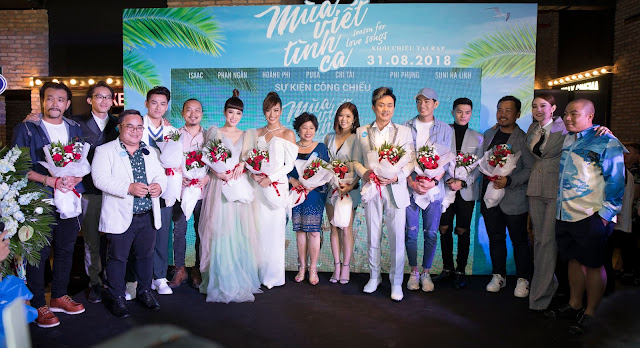 Sự kiện họp báo kết thúc lúc 19h30', sau đó các nghệ sĩ khách mời theo sự hướng dẫn của nhân viên hệ thống rạp CGV bước chân vào rạp để cùng trải qua một "Mùa viết tình ca". Bộ phim nói về một hitmaker của làng nhạc Việt là nhạc sĩ Bảo Trung (Do Isaac thủ vai) bị người hâm mộ tẩy chay khi lộ ra chuyện anh "ăn cắp" nhạc của cộng sự Quang Minh (Lâm Vinh Hải thủ vai). Để lấy lại tinh thần và cảm hứng sáng tác nhạc, anh quyết định rời khỏi Sài Gòn ồn ào, tìm tới vùng biển Mũi Né. Tại đây, Bảo Trung đã gặp được "nàng thơ" của mình là Lam (Phan Ngân thủ vai). Bộ phim chính thức ra mắt các rạp trên toàn quốc vào hôm nay, 31 tháng 8.