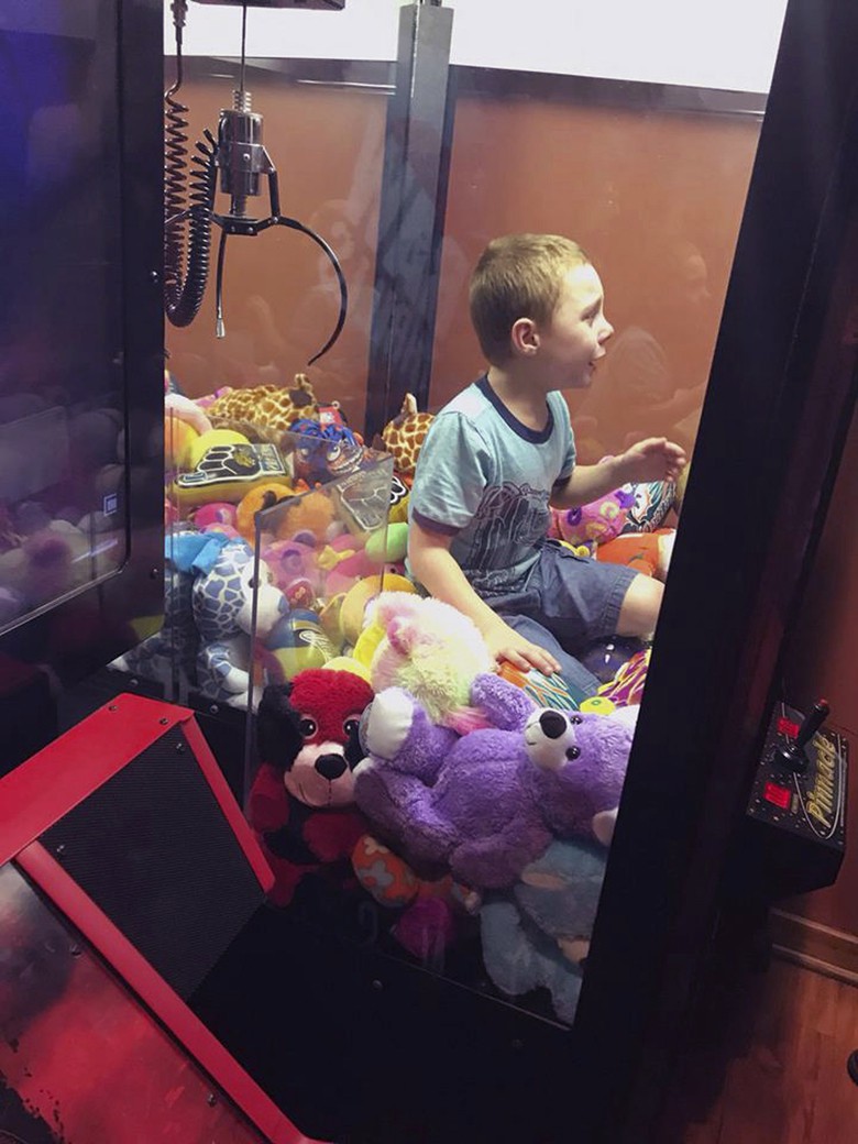Quá yêu thích con thú bông trong máy gắp thú, cậu bé Mason sống tại bang Florida, Mỹ đã chui luôn vào trong máy để lấy con thú ra. Ấy vậy nhưng cậu bé lại bị mắc kẹt trong đó.